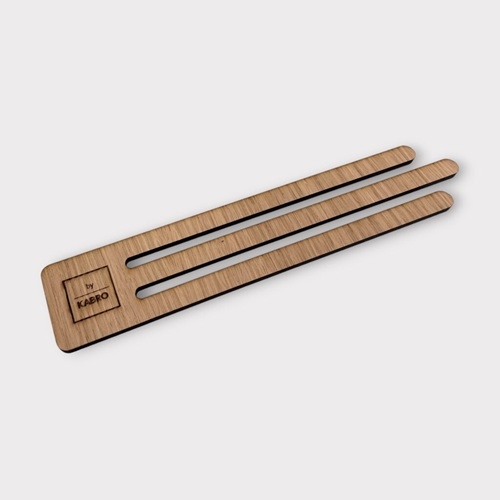 Elegant mønsterskabelon i egetræsfiner med hård kerne. Perfekt til at følge opskrifter og holde styr på linjer, mens du arbejder. Med indgraveret centimeter-skala.