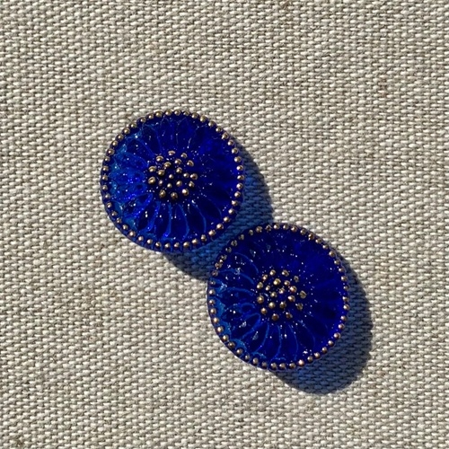 Glasknap - Solsikke - cobalt blå, guld - 18 mm