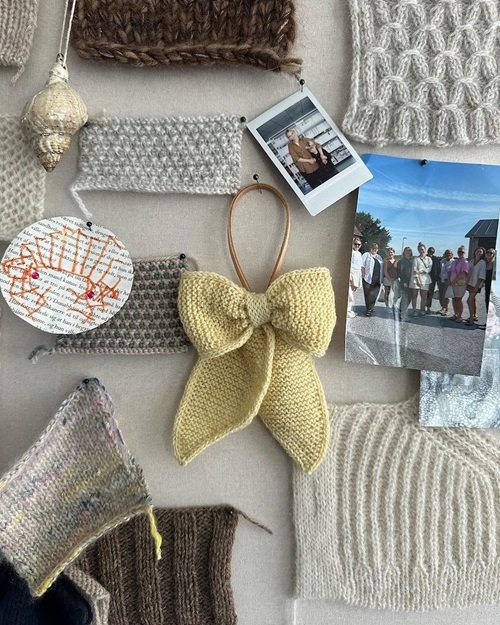 December Bow strikkes frem og tilbage i ét stykke i retstrik med i-cordkanter fra spids til spids. Til sidst foldes arbejdet til en sløjfe og sys sammen. Der monteres en læderstrop bagpå sløjfen, så den kan hænge.