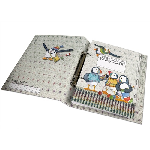 Indeholder: strikkefasthedsmåler og målebånd på indersiden med både cm og inches.