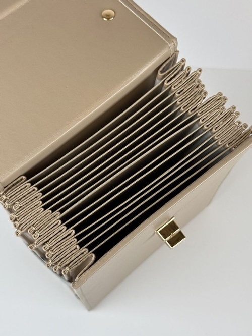 Etuiet kommer i glat kunstlæder med guld detaljer og guldfarvet lås.