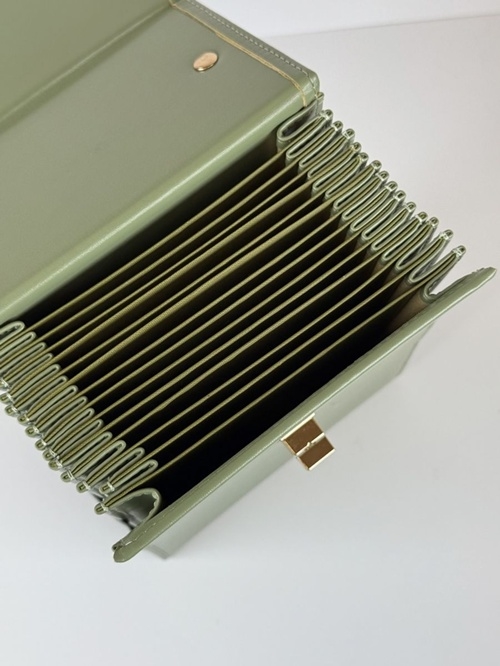 Rundpindemappen er lavet av top kvalitet kunstlæder. Den har 14 lommer, det er plads til flere rundpinder i hver lomme.